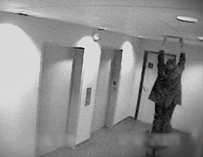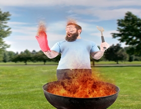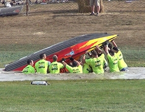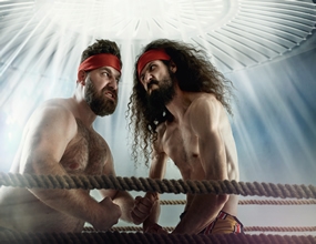 A woman is playing "Rock Paper, Scissors" with a guy and when they do, "Rock, Paper, Scissors, Shoot!" a guy standing next to them, slaps her in the face with a tortilla.
