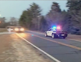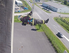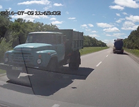A car fails to change lanes at a high speed, hits another car, flies into a roadside through a fence and crashes into a tree.